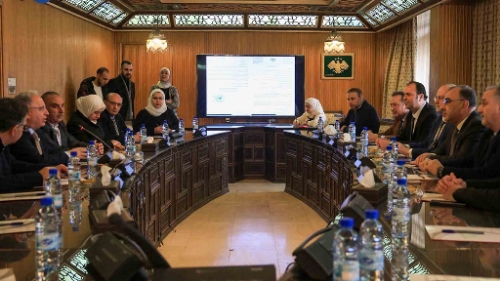 عقد وزير المالية، محمد يسر برنية، اليوم اجتماعاً موسعاً مع أعضاء غرفة تجارة دمشق، لمناقشة القرارات الأخيرة المتعلقة بسلفة الضرائب وآليات تطبيقها، في إطار التنسيق المستمر بين وزارة المالية والقطاع التجاري لتطوير بيئة الأعمال وتسهيل الإجراءات الضريبية.
