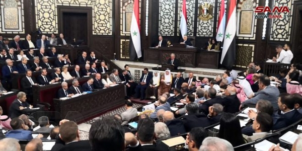 سيرياستيبس : بدأ مجلس الشعب أعمال دورته الاستثنائية الخامسة للدور التشريعي الثالث والمخصصة لدراسة ومناقشة الواقع الاقتصادي والمعيشي وسعر صرف الليرة السورية برئاسة حموده صباغ رئيس المجلس وحضور رئيس مجلس الوزراء المهندس حسين عرنوس والوزراء.