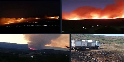 خطير جداً والنيران تقترب من المنازل والأهالي يناشدون الحكومة إرسال حوامات لإخماد