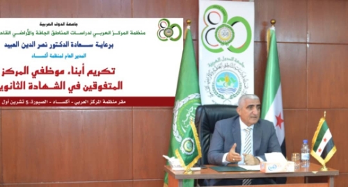 احتفاءً بالعلم وتتويجاً لجهود أبنائها، أقامت منظمة المركز العربي لدراسات المناطق الجافة والأراضي القاحلة "أكساد" حفلاً تكريمياً لمتفوقي شهادة الثانوية العامة لعام 2025 من أبناء العاملين فيها، وذلك في مقرها بدمشق، الأحد 5 تشرين الأول.